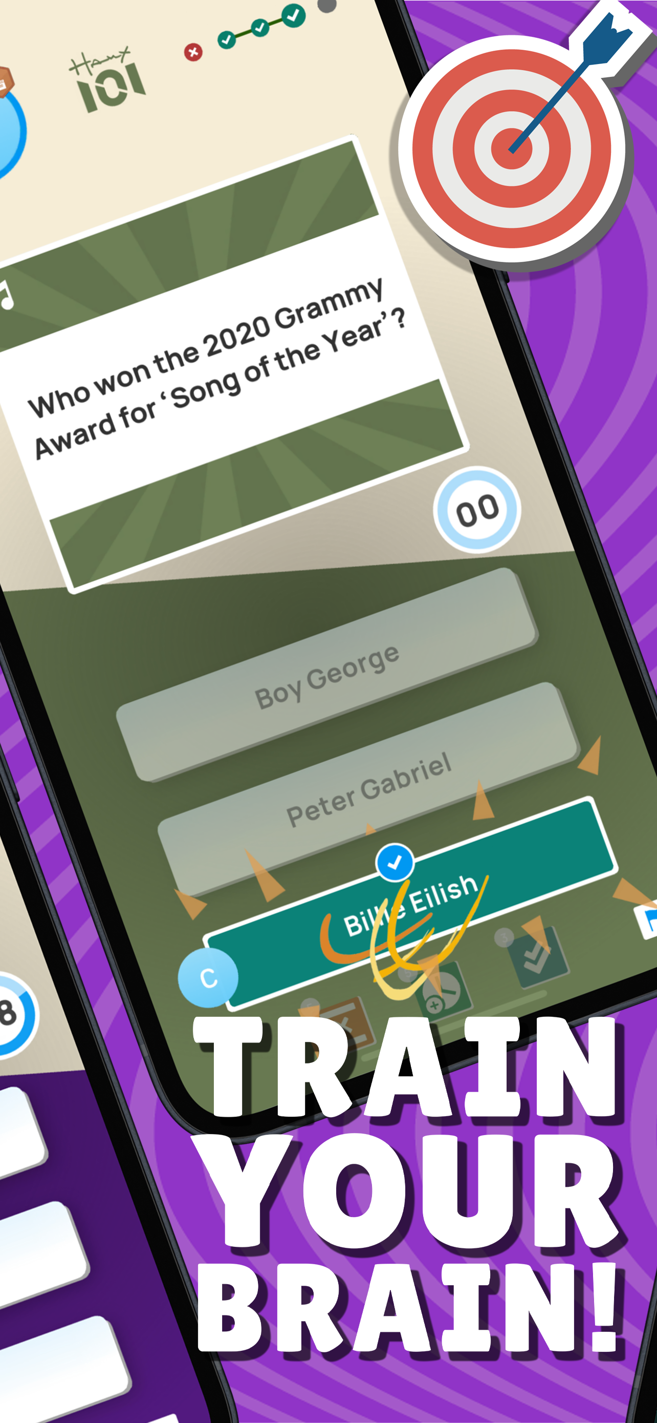 In Hanx101 mode, you’ll be challenged to answer 101 questions as you journey through different worlds. Multiple correct answers in a row earn you more trophies! Share your score to challenge your friends and family, or prove your wits against the Apple Arcade community. Secure a place on the Hanx101 leaderboards, and become a bonafide trivia legend.